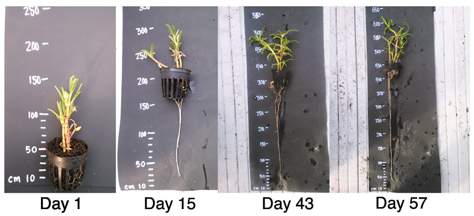 The saltwort did not perform as well initially. However, after five months, it appears to be growing better.