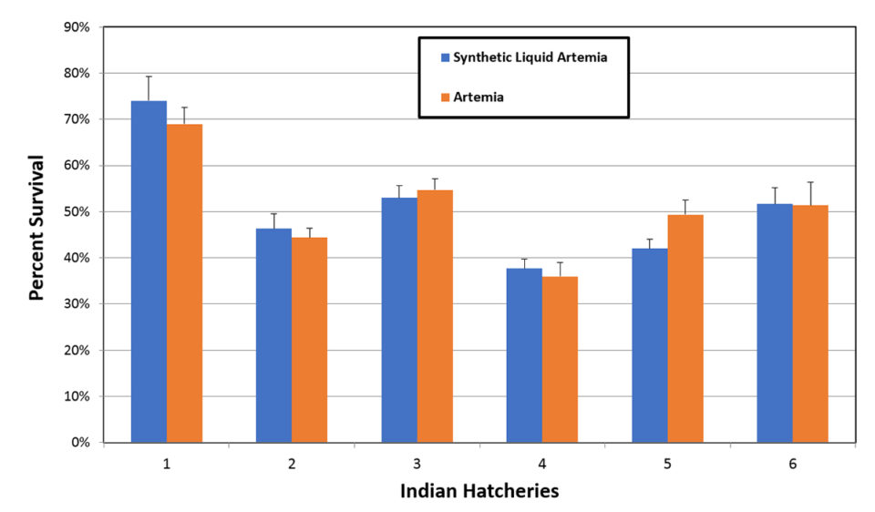 This test was carried out at a Western Hemisphere hatchery that had removed the use of hatched artemia and had exclusively used synthetic artemia during the previous two years. The hatchery reported increased survival, sustained improvements in water quality and increased hatchery productivity, leading to lowered production costs and higher profitability.