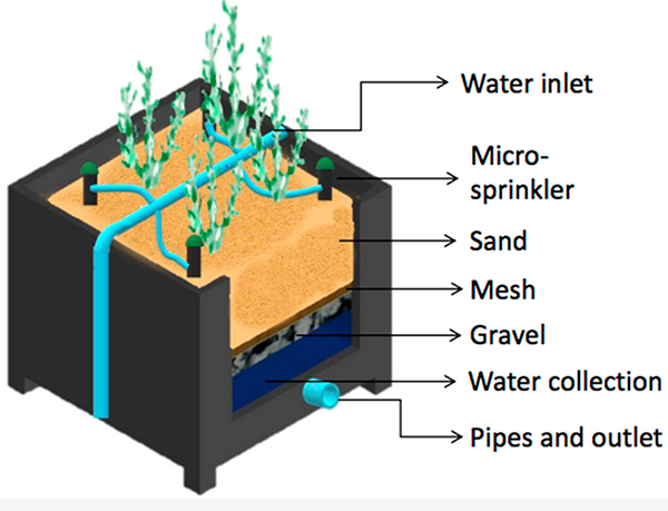 If these plants are grown in lysimeters [measuring device which can be used to measure the amount of actual evapotranspiration which is released by plants ] or wetlands, the interactions between the soil, microorganisms and plants have a higher potential to remove nitrogen compounds and produce biomass, which can be used as animal feed or human food, and in the production of biofuels or byproducts of interest to the pharmaceutical industry, among other applications. Additionally, it has been demonstrated that these systems are also efficient in removing residual phosphates from RAS.