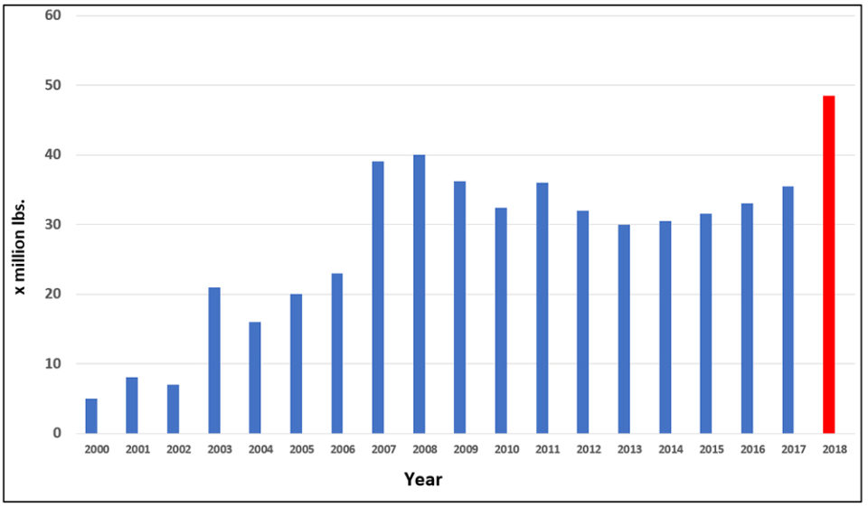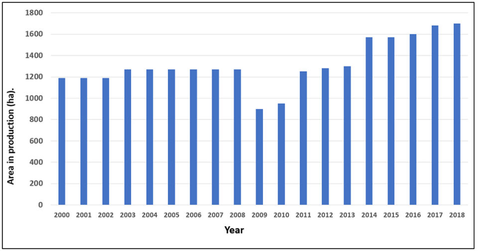 Se espera que los 120 productores de camarón produzcan cerca de 25,000 toneladas métricas de camarón cultivado en aproximadamente 1650 ha de estanques en 2018.