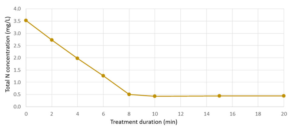 Over a period of two hours, up to 28 mg/L TAN was removed using a combination of copper cathode and boron-doped diamond (BDD) electrodes. Combinations of BDD- tin (Sn; anode and cathode, respectively) were also found to be effective (23 mg TAN/L removed), whereas BDD-BDD electrodes only showed limited TAN removal capacity.