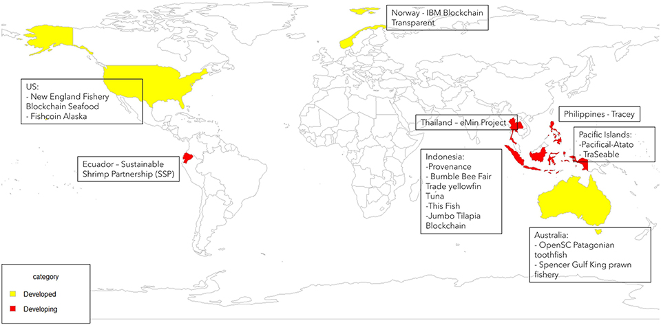 En los EE. UU., varios productos pesqueros que se importan deben ser rastreables como parte del requisito aduanero. En la UE, la rastreabilidad de los productos del mar en todas las etapas de producción (incluida la captura o recolección, el procesamiento, la distribución y la venta al por menor) es un requisito. Los sistemas actuales utilizados en la UE varían según el país, mientras que en algunos casos carecen de digitalización. La UE pidió recientemente un sistema digital obligatorio y más estandarizado para la rastreabilidad de los productos de pescados y mariscos. El blockchain se adapta muy bien a estas necesidades.