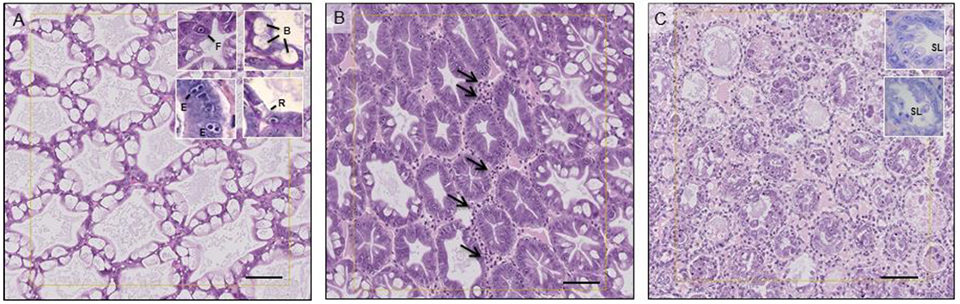 An example of the typical pathology of the hepatopancreas of AHPND infected shrimp can be seen in Fig. 1.