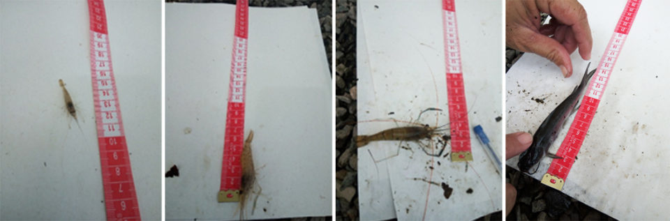 An intensive farming system was used, with the catfish juveniles stocked at a density of 100 per cubic meter and a weight of 0.5 grams, while for the freshwater prawns postlarvae (PL; 0.003 g), two stockings were done one month apart at a density of 100/cubic meters each, for a total stocking of 200 PL per cubic meter. The catfish and prawns were cultured for 85 days with constant aeration and continuous water exchange and fed ad libitum with commercial feed for tilapia and marine shrimp, respectively. At the end of the study, the catfish and the prawns were harvested and weighed and returned to the culture system.
