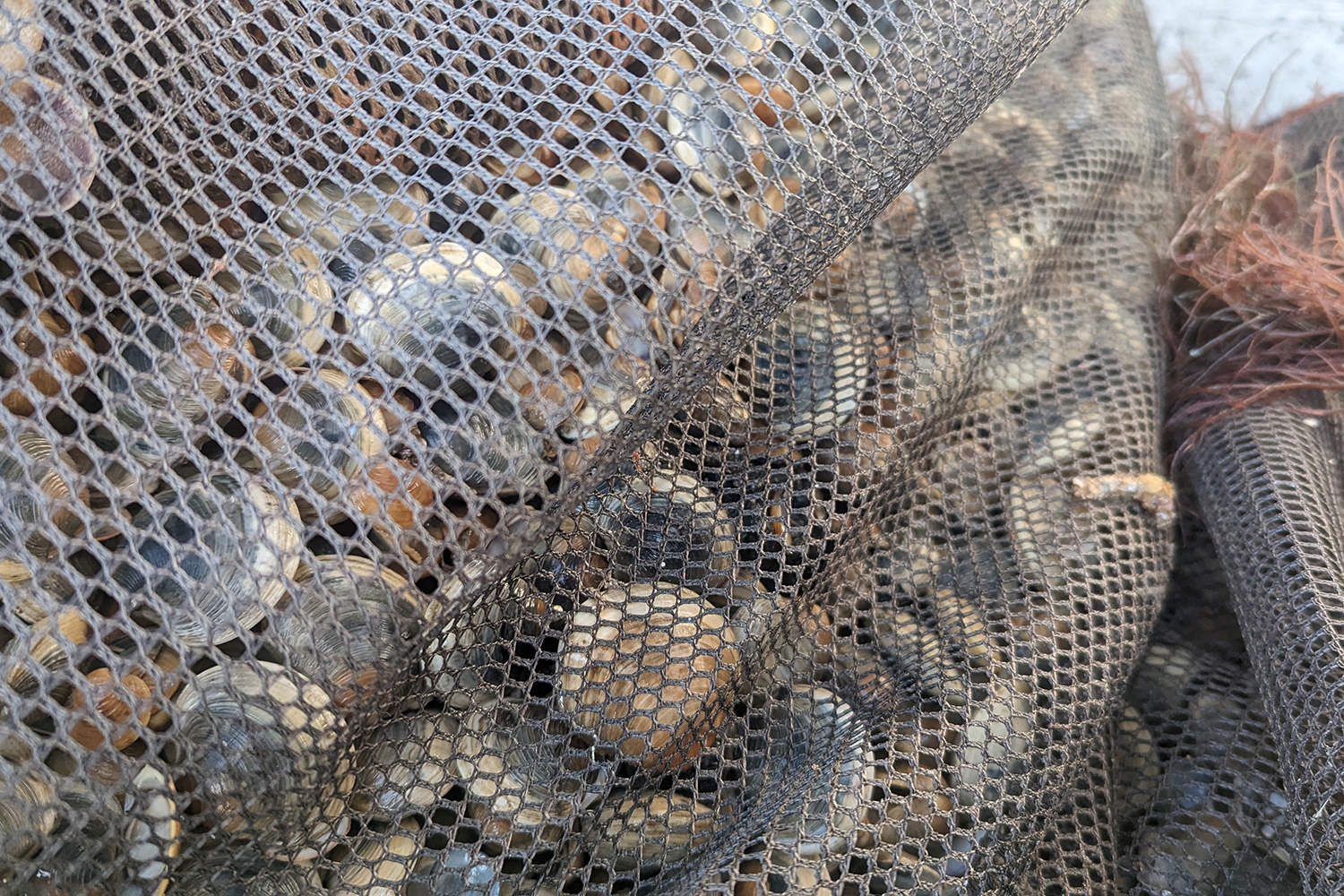 Bobbitt had just planted nursery clams in grow out bags and staked them with PVC stakes in the soft-bottom farm lease when Hurricane Helene made landfall in September 2024.