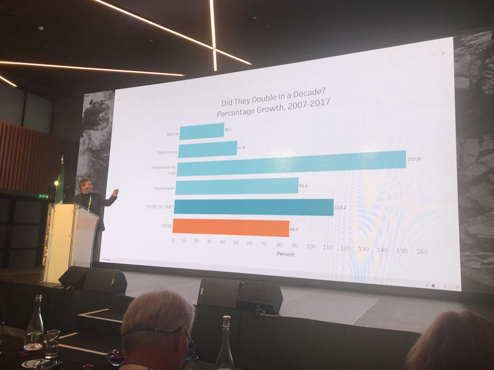 Ragnar Tveteras, an economist and professor at the University of Stavanger’s Department for Industrial Economics, Risk Management and Planning in Norway, presented analyze exclusive data on global farmed finfish production.