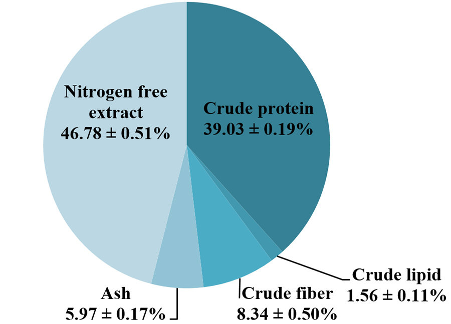 The green water meal produced in our facilities contained 99.76 ± 0.05 percent dry matter, 39.03 ± 0.19 percent crude protein, 1.56 ± 0.11 percent crude lipid, 8.34 ± 0.50 percent crude fiber and 5.97 ± 0.17 percent ash. In general, the green water meal produced in tilapia culture tanks is characterized by high protein, low lipid and moderate fiber and ash contents.