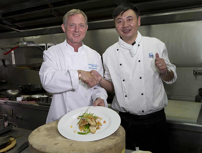 A few days before the Global Aquaculture Alliance’s annual GOAL conference in Guangzhou, China, GAA market development manager for the United Kingdom, Mike Berthet, collaborated with some local chefs to prepare some of China’s favorite seafood species. The “East meets West” event brought the chefs together to prepare some of the dishes that will be served at the GOAL Gala Event on Wednesday night, such as shrimp in hot chili oil, black vinegar jellyfish and deep fried tilapia with sweet and sour sauce.