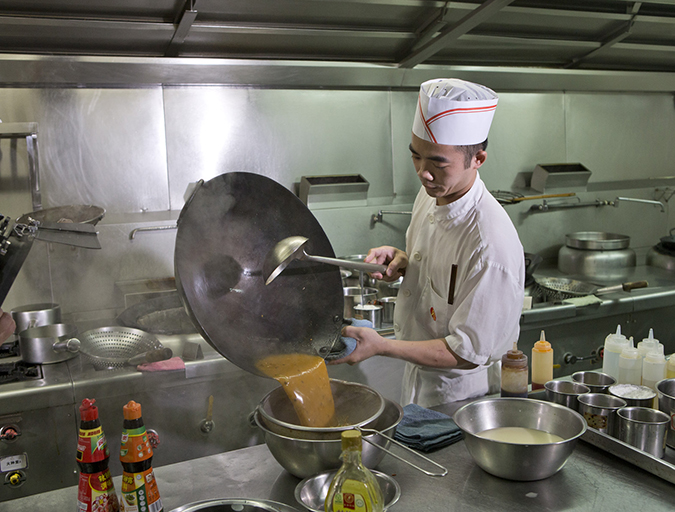 Joining Berthet in the kitchen of TaoRanXuan Restaurant in Guangzhou were Chef Xian Zhuo Hong, TaoRanXuan; Ken Su, Zhenjiang Guolian Aquatic Products Co. Ltd.; Chris Arkadieff, head chef, Restaurant Associates at Wellcome; Weijian Shen, Zhenjiang Guolian Aquatic Products Co. Ltd.; and Lu Wenhu, sous chef at TaoRanXuan.