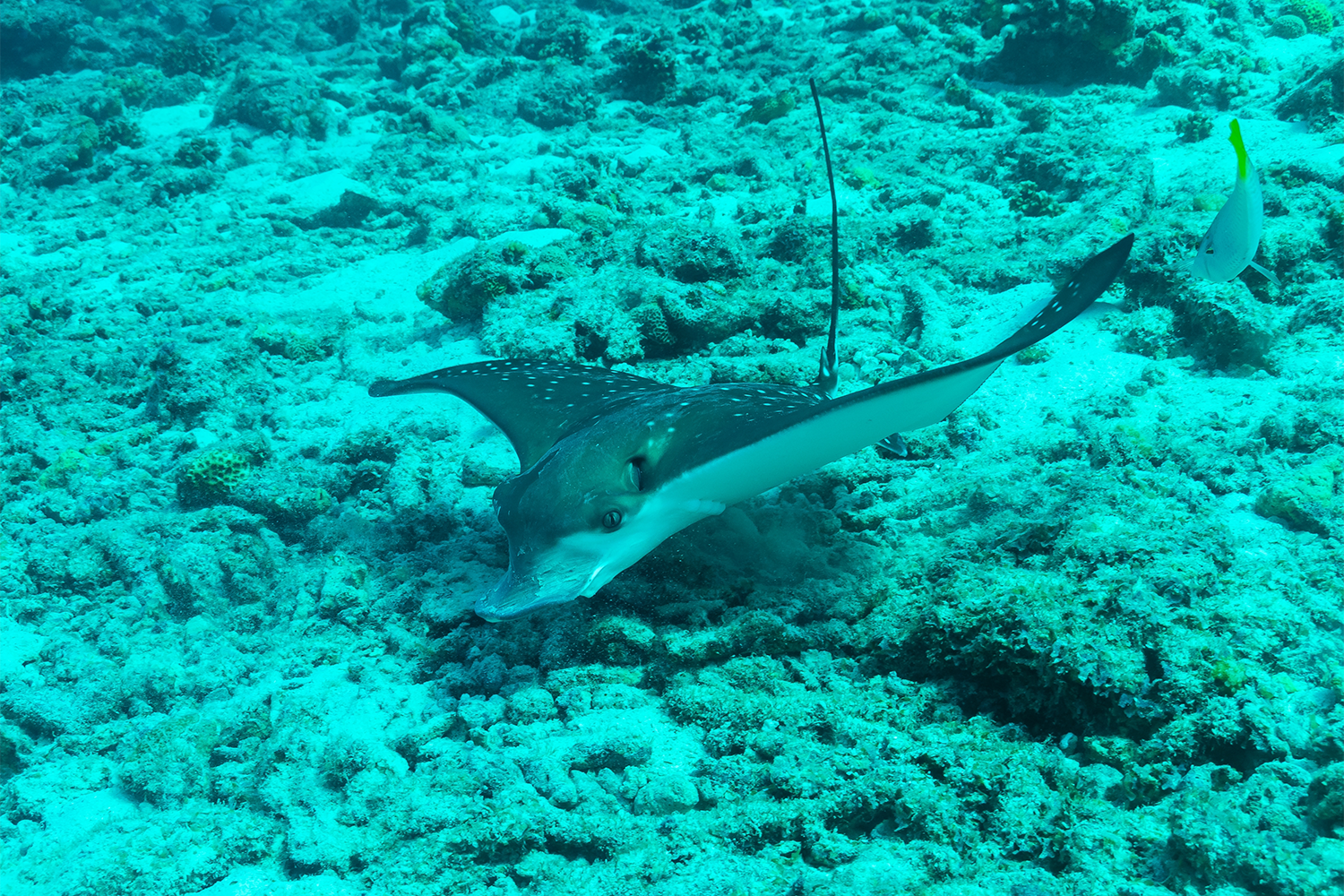 In a March study published in Aquaculture Environment Interactions, a team from Florida Atlantic University’s (FAU) Harbor Branch Oceanographic Institute and the Mote Marine Laboratory studied how the whitespotted eagle ray interacted with clams enclosed in anti-predator materials.