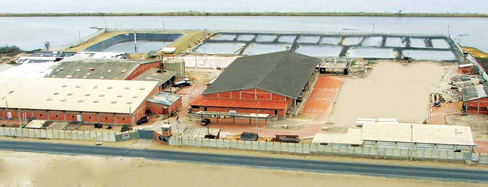 The farm currently consists of 420 hectares of grow-out ponds and nursery tanks. The maturation system consists of two complexes, one containing 12 production tanks and the other containing 20 production tanks. The larviculture system consists of three production complexes, one containing 12 tanks, the second containing 24 tanks and the third containing 16 tanks. The tanks are of concrete construction, epoxy coated and can be operated at levels from 10 to 12 tons each. Each production system, both maturation and larviculture, has been designed to operate as an independent unit with regard to water reservoirs and piping.