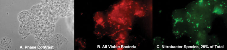 Healthy populations of both ammonia- and nitrite-oxidizing bacteria must be present in aquaculture systems to support the nitrification of potentially toxic ammonia to nitrite, with further oxidation to less problematic nitrate.