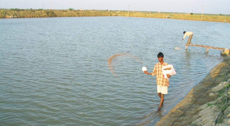 Feeding allows much greater production of fish and shrimp, but nutrients in feed are not converted completely to fish or shrimp flesh.