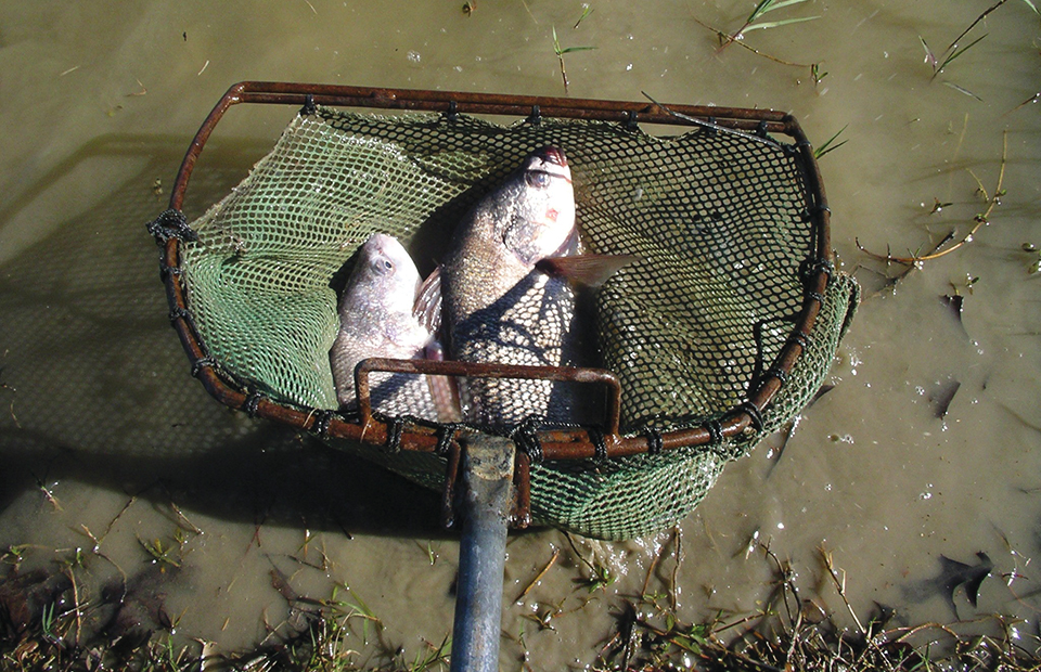 The freshwater drum is a proposed snail-control vector in catfish ponds. In tank studies the drum showed high survival and reduced snail populations.