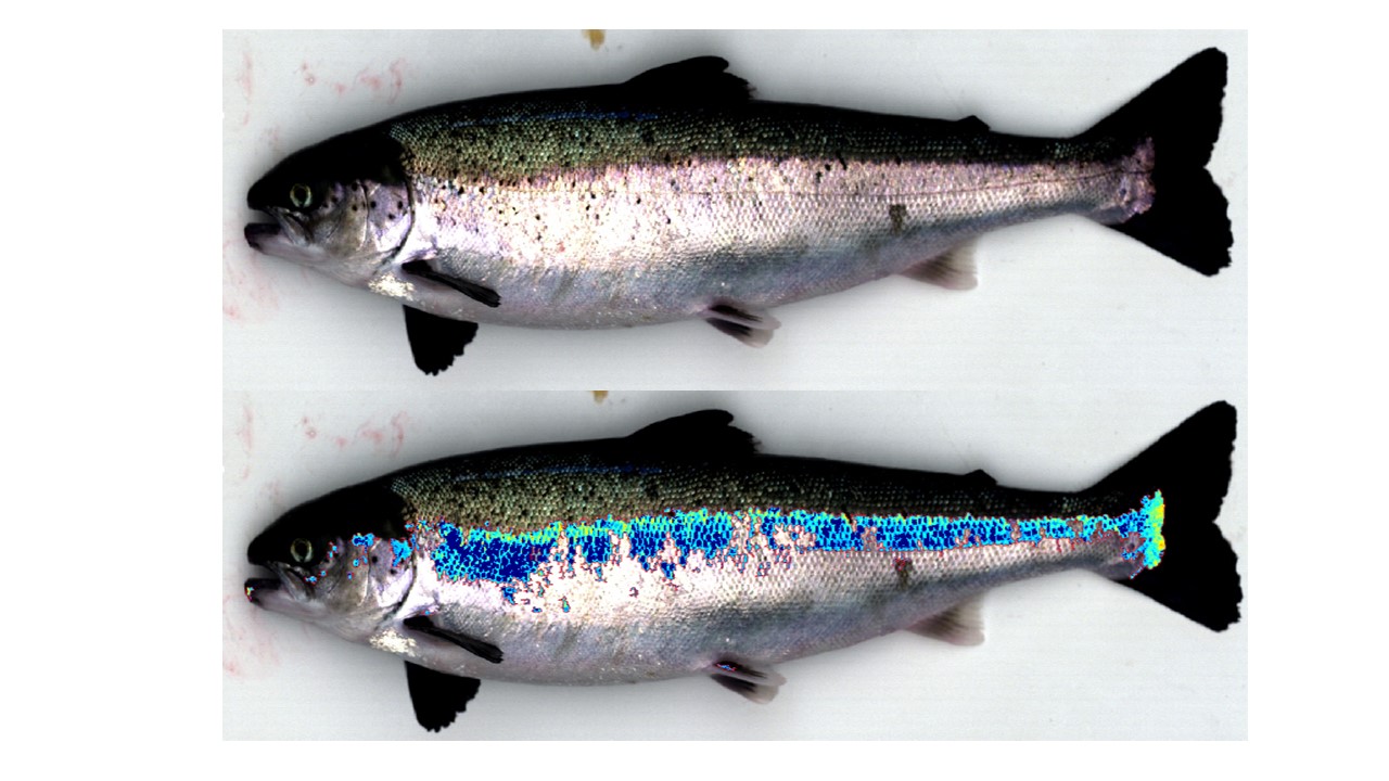 By training computers to identify welfare traits, a greater number of samples can be processed in a shorter amount of time, with greater accuracy using cameras, sensors and computer algorithms to produce more reliable and quantifiable estimates of fish health. One such tool involves hyperspectral imagery – a technology that captures more wavelengths of light within the visible spectrum, as well as pushes the margins outside of it (UV, infrared).