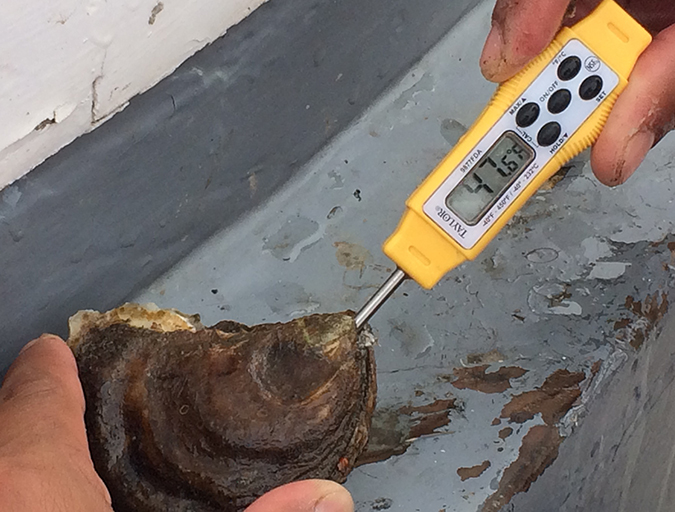 “After the 2013 outbreak, we started using an icing slurry. We drop the oysters straight into the chilled water, which brings the meat temperature down below 50 degrees in 15 minutes,” he says.
