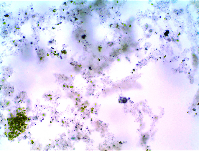 Aquatic bacteria exist in much greater numbers attached to a substrate compared to free floating in the water column. By suspending solid waste in the water through aeration and mixing, diverse communities of bacteria, algae and protozoa attached to free floating detritus or residual organic matter, can thrive. This provides additional nutrition for the culture organism that can feed on this “environmental food.” Within, weeks to months depending on feed inputs, solids form into suspended, feathery aggregates, here on referred to as “flocs.”