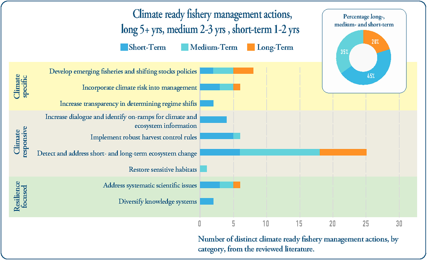 - Nearly all such actions fit within existing fishery management and regulatory frameworks (no major legal overhauls required).