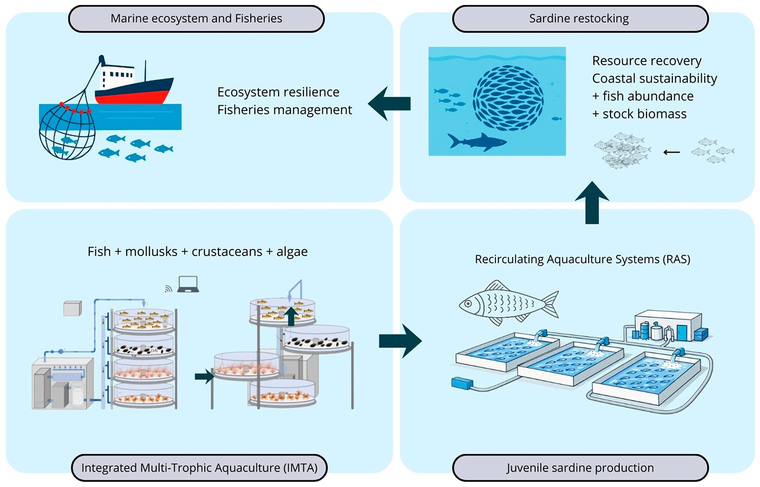 Broader perspectives also discussed include policy integration, urging governments to incentivize restocking programs through subsidies or regulations, similar to Japan’s successful sardine enhancements. Challenges remain, like high initial costs for RAS setups, but long-term benefits in resilience and sustainability outweigh them. Ultimately, this interdisciplinary framework could support strategies to promote and enhance sardine fisheries within current global changes.