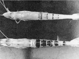 The first processing step in the production of shrimp feeds is the grinding of ingredients for a formula, either individually or as a group.