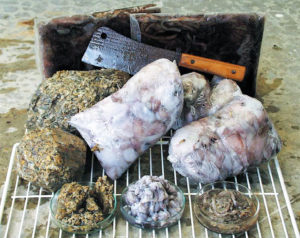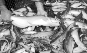 It is common practice to broadcast feed throughout a shrimp pond with a few feeding trays to help monitor consumption and adjust ration size.