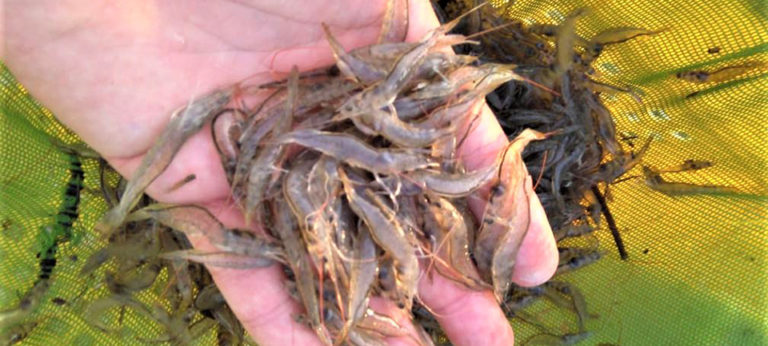 In shrimp RAS, use of ozone stabilized water microbial composition, biofilms and shrimp carapaces, controlled nitrite and accelerated nitrate degradation.