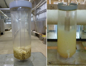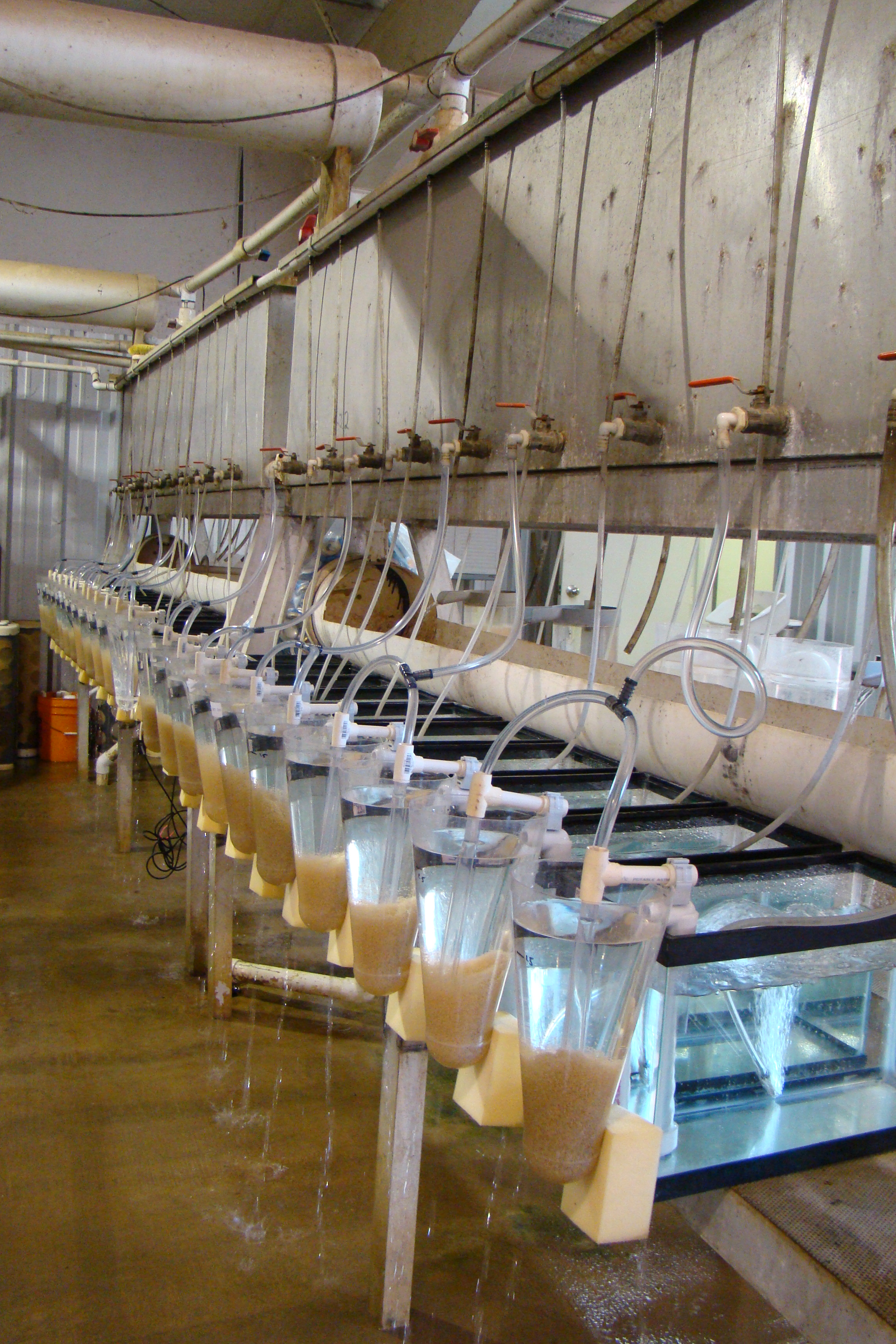 In the effectiveness experiment, the volume of eggs in each hatching chamber was 108.7 ± 4.5 mL (mean ± SD) and yielded a mean of 174,855 ± 19,689 eggs via the XPC enumerator (a commercial device that uses preprogrammed algorithms to correlate the value recorded by the receptor to total number of organisms in the container). The DO and temperature were 93.7 ± 2.7 percent saturation and 19.2 ± 0.1 degrees-C, respectively, and the flow rate through the hatching chambers was 1.15 ± 0.15 L/min.