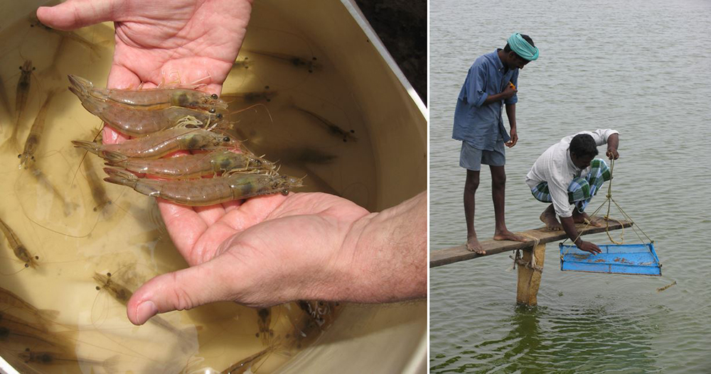 El muestreo de rutina es común en la mayoría de las granjas para monitorear las poblaciones de camarones y la salud general de los animales en los estanques. El muestreo se lleva a cabo generalmente recolectando muestras utilizando redes de atarraya con aperturas netas de aproximadamente 0,5 cm, lanzadas desde embarcaciones o desde los diques del estanque. El personal nuevo en el procedimiento de muestreo debe ser supervisado de cerca inicialmente, cuando tienden a traer de vuelta a los animales más grandes en lugar de recoger una muestra aleatoria.