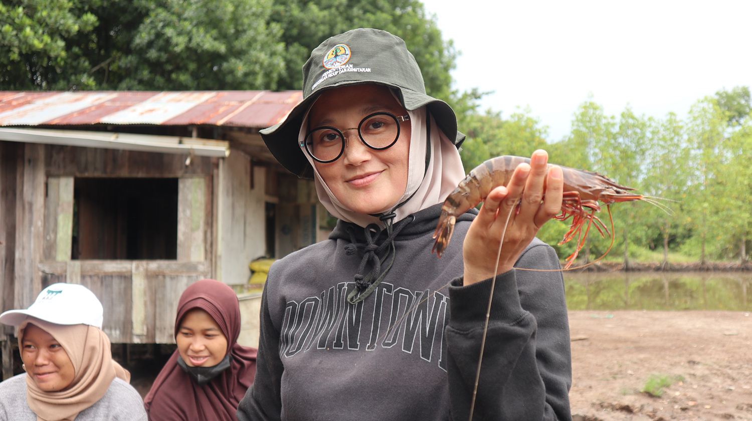 Esti Handayani Hardi, profesora de la Facultad de Pesca y Ciencias Marinas de la Universidad de Mulawarman, ha estudiado dos enfoques de silvo-pesquería: empang parit (estanque de trinchera), que consiste en excavar un canal alrededor de un estanque de camarones y plantar manglares, y komplangan, que mantiene los manglares alrededor del estanque, dejando el estanque limpio. Su investigación concluye que el modelo komplangan duplica la cosecha del modelo de trinchera gracias a una mejor filtración del agua y circulación de nutrientes.