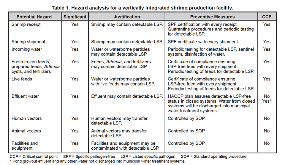 Note: A report describing the application of HACCP principles to control viral pathogens at shrimp aquaculture facilities is available from the main author.