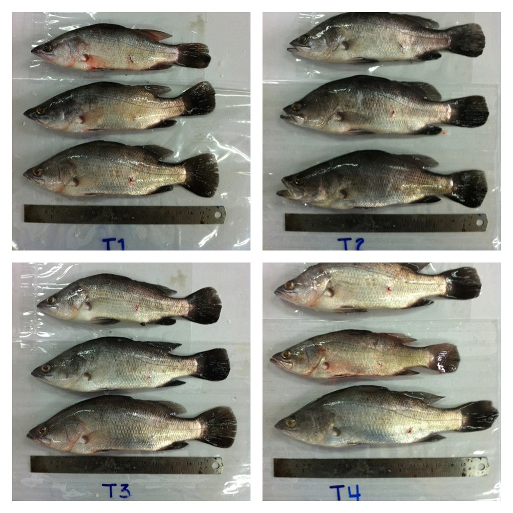 The current investigation aimed to examine the effects of 0.5 percent KDF in commercial sea bass feeds under research conditions in Thailand. A total of 120 juvenile Asian seabass with a mean weight of 16.50±3.97 g were stocked into twelve 240-L, freshwater aquaria in a completely randomized design. Fish were divided into two groups (negative control and KDF treatment) and reared for 75 days at 26-30°C water temperature. The crude protein content of the Australian-formulated diet was 54 percent. The fish in both the control and KDF treatments were given the appropriate feed with a daily ration equivalent to 3-5 percent of their body weight. Feed was dispensed to the fish three times a day. Water parameters and growth performance of fish were monitored regularly. Data were analyzed using the t-test and a confidence level of 95 percent was defined for these analyses.