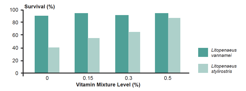 - The rate of vitamin loss may be higher for L. stylirostris than for L. vannamei.