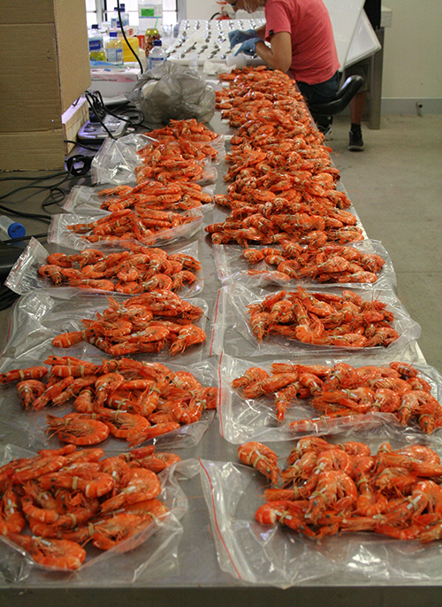Colección de datos fenotípicos y el desarrollo de tecnologías de adquisición de fenotipo de múltiples rasgos industriales – Los programas de reproducción de camarones requieren la recopilación de registros fenotípicos de decenas de miles de individuos por generación. Incluso para un solo rasgo esto representa una inversión enorme de trabajo con el fin de recolectar las cantidades adecuadas de datos para tomar decisiones de selección fiables. Como resultado, los programas de mejora de camarones en general se han limitado a la selección para el crecimiento, la supervivencia y la resistencia a las enfermedades.