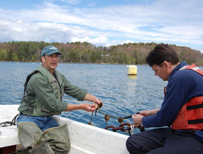 Dana Morse, extension associate for Maine Sea Grant College Program and the University of Maine Cooperative Extension in Walpole, Maine, has been working on scallop restocking and farming efforts for 17 years at the Darling Marine Center. For the past five years, the efforts have turned mostly to farming and Morse has “done a lot with a little,” experimenting with different kinds of culture gear, while collecting data on growth rates and mortality. He’ll be traveling to Japan as well and hopes to project some economic analysis for scallop farming in Maine waters, looking at production costs and benefits like meat yield and market value.