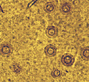 Sex-reversed hybrid tilapia of about 10-cm length reared in three, 340-L indoor tanks at the Aquatic Animal Health Research Unit of the U.S. Department of Agriculture’s Agricultural Research Service in Auburn, Ala., were found to be parasitized with Trichodina on both skin and gills. The infection intensity was measured at 4 to 8 Trichodina within a single 100-time magnification view under a microscope.