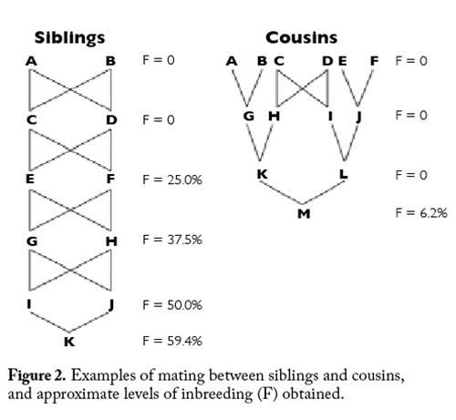 The experiment was designed to generate inbred families, which were the product of sibling mating in successive generations, as well as groups of families with different inbreeding coefficients, including families with relatively low inbreeding levels. Mating was carried out to obtain families with an inbreeding level ranging between zero and 61 percent.