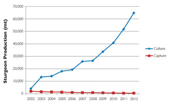 It is worth noting, however, that the “caviar” market includes 60,000 MT of caviar and caviar substitutes made from non-sturgeon fish eggs and animal and plant derivatives. This presents a difficult marketing landscape for producers of true sturgeon caviar.