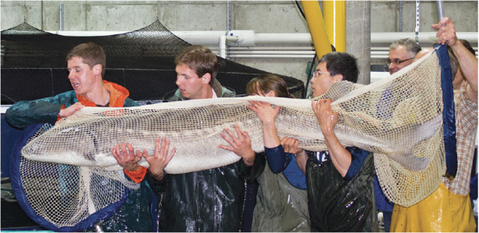 Still in its early development phases, sturgeon aquaculture in B.C. has focused exclusively on Lower Fraser sturgeon. This work was initiated in the early 1980s by Dr. Dave Lane at Malaspina College — now Vancouver Island University — in Nanaimo. Lane collaborated with researchers at the University of California — Davis on initial work that involved mark and re-capture studies and research on spawning and rearing techniques.