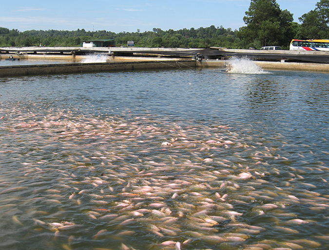 A semi-intensive system involves larger ponds of up to several hectares and is typically labor intensive, with aquaculture activities often carried out in combination with other agricultural or animal husbandry activities. Fish are grown in two to three phases in smaller ponds or tanks, to progressively larger sizes until stocking into the large ponds for final growout to market size. The natural productivity of ponds is increased through animal manuring, thus helping keep production costs down.
