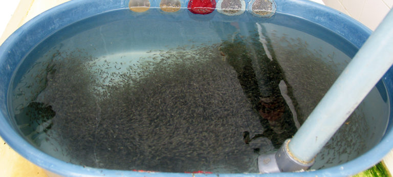 The growth and survival of red tilapia fry were not significantly affected by different photoperiods in three 30-day experiments. Results suggested that it is not necessary to maintain constant lighting or a constant light/dark circadian scheme.