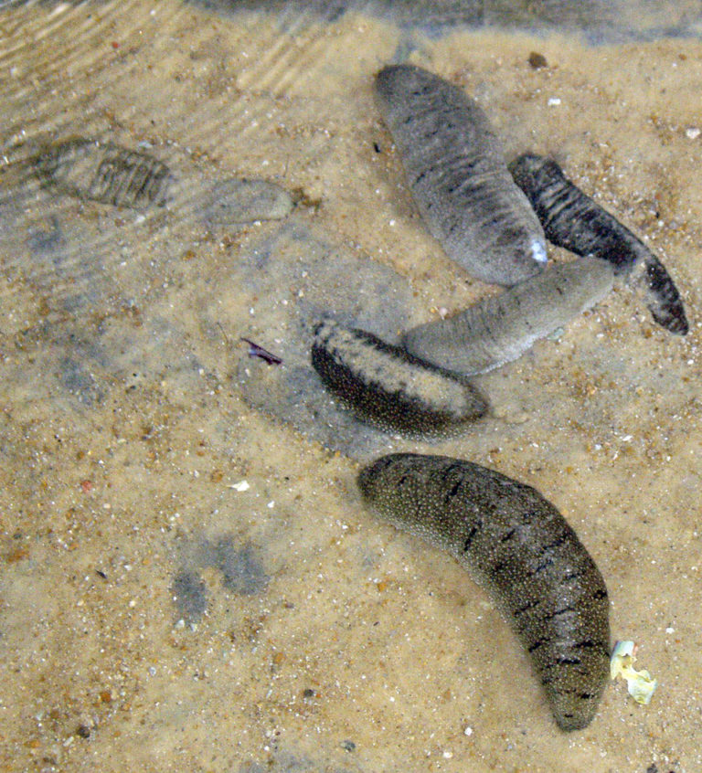 Sandfish, a high-value sea cucumber, supports the aquaculture of other fish species by cleaning up waste on the bottoms of ponds or sea cages.