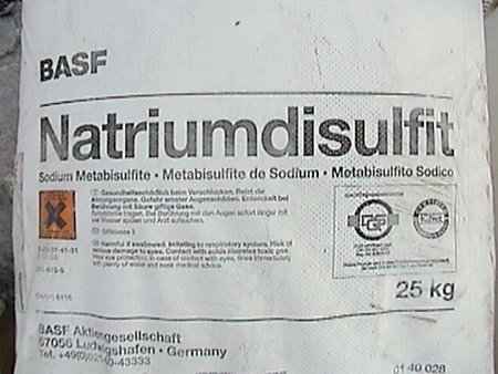 Dip shrimp in a 5 percent sodium bisulfite solution for 2 to 5 minutes to produce a bisulfite concentration of 30 to 50 ppm sulfur dioxide equivalent in the shrimp.