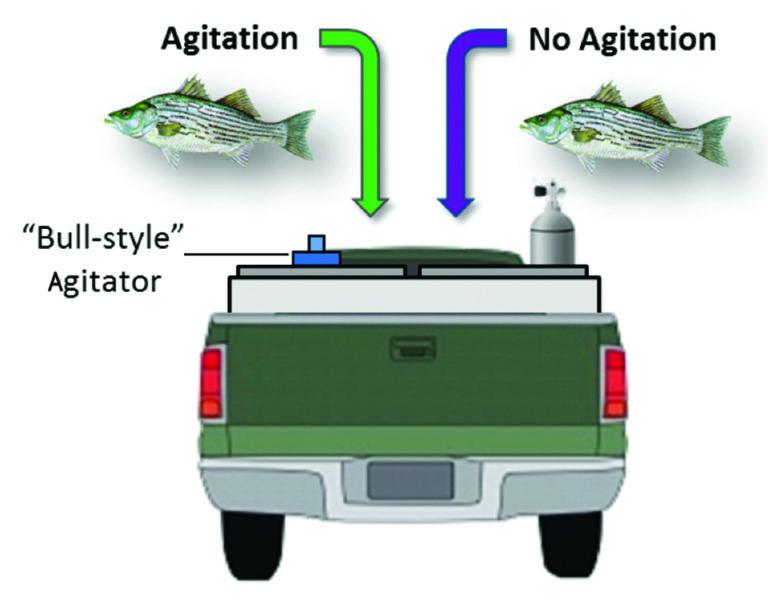 Anecdotal information has suggested that pond-reared hybrid striped bass are more vulnerable to transportation-related stressors than cage-reared fish. Study results suggested that accumulation of carbon dioxide and decreasing pH levels may contribute to this phenomenon. Agitation during simulated transport mitigated the carbon dioxide accumulation and stabilized pH, but shifted the total ammonia nitrogen equilibrium in favor of un-ionized ammonia nitrogen.Ultimately, the agitators did not substantially attenuate the stress responses observed in the fish.