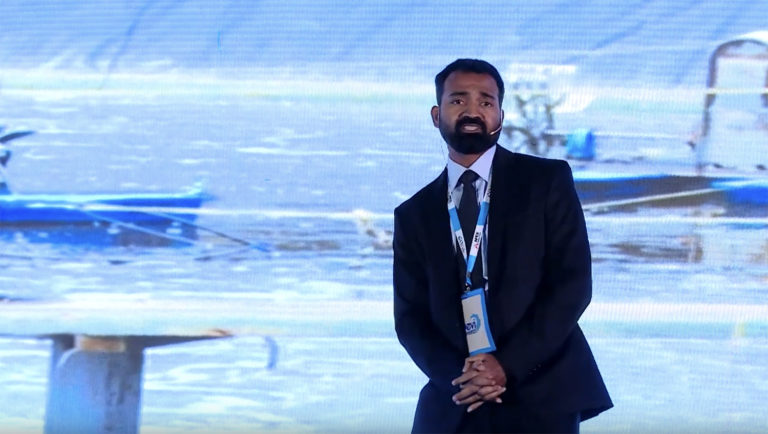Aditya Dash delivers his "Powered by PechaKucha" presentation at the Global Aquaculture Alliance's annual GOAL conference, held this year in Chennai, India.