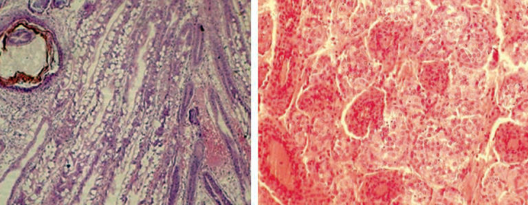 A shrimp's ruptured or discolored hepatopancreas is from a combination of factors involving nutrition, stress or toxins at various production chain levels.