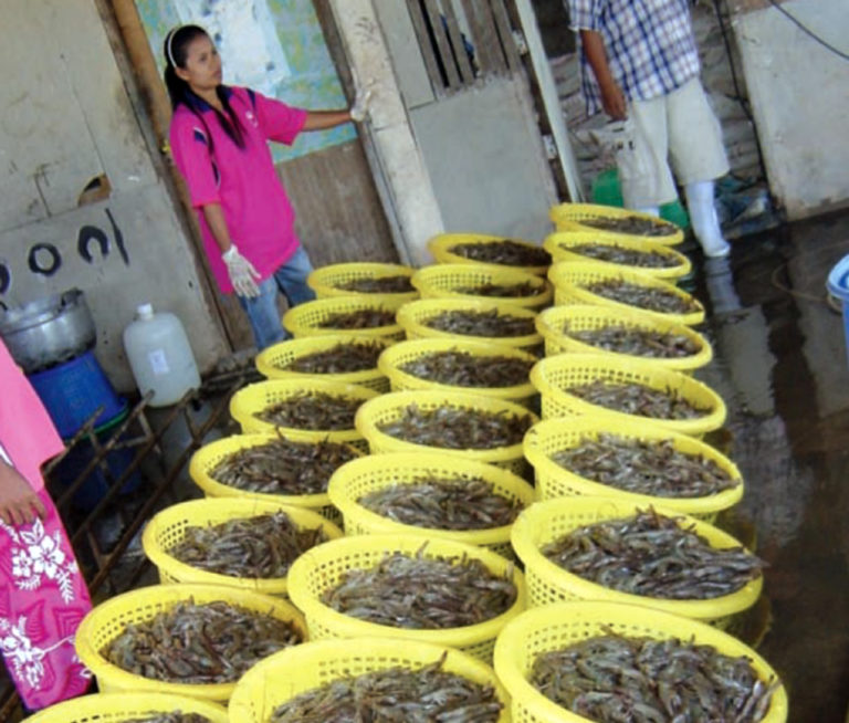 In research involving white shrimp siblings raised in ponds in Thailand and in raceways in Hawaii, shrimp growth can be improved after one generation of selection, even with a modest investment.