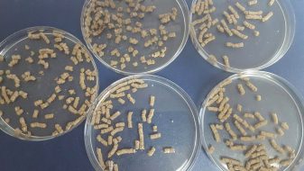 This last statement is important as it relates to water stability of shrimp feeds. The target is to produce shrimp feeds that can absorb water, becoming soft and pliable, but that do not break down when submerged. In reality, a shrimp can eat a softer pellet better than it can consume a hard one. When feeding, a shrimp balls up the pellet and takes it to its mouth and consumes it slowly. If the pellet is too hard, the shrimp will simply reject it and it will become wasted and potentially-polluting organic matter in the pond.