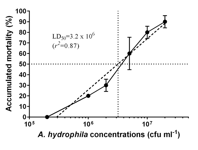 | Clipping of adipose fin | TSB medium A. hydrophilia | 4 4 | 40 40 | 0 90.0±7.1 |