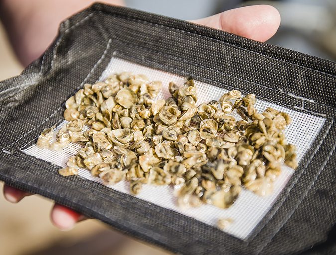 Hungry locals shouldn’t expect to see “Grown in San Diego Bay” oysters at raw bars anytime soon – the focus here will be on nursery production. To start, a small amount of purchased hatchery oysters will be grown from seed (3 to 4 millimeters in size) to roughly the size of a quarter (20-25 mm), and tested against established health safety standards.