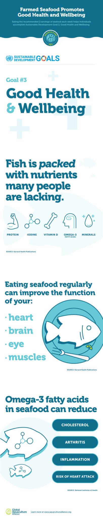 View the full Farmed Seafood Promotes Good Health and Wellbeing infographic.